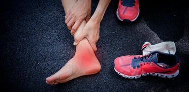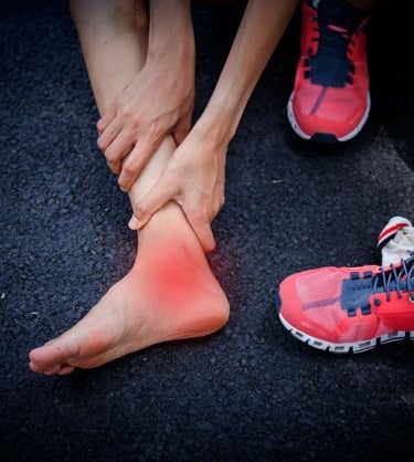 An ankle sprain occurs when the ligaments in the ankle are stretched or torn, typically due to a sudden twist, turn or fall. It can cause pain, swelling, bruising and difficulty moving the ankle.