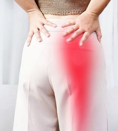 Targeted treatments to relieve radiating lower back and leg pain caused by sciatic nerve compression, using a mix of physiotherapy, stretching and pain-relieving modalities.